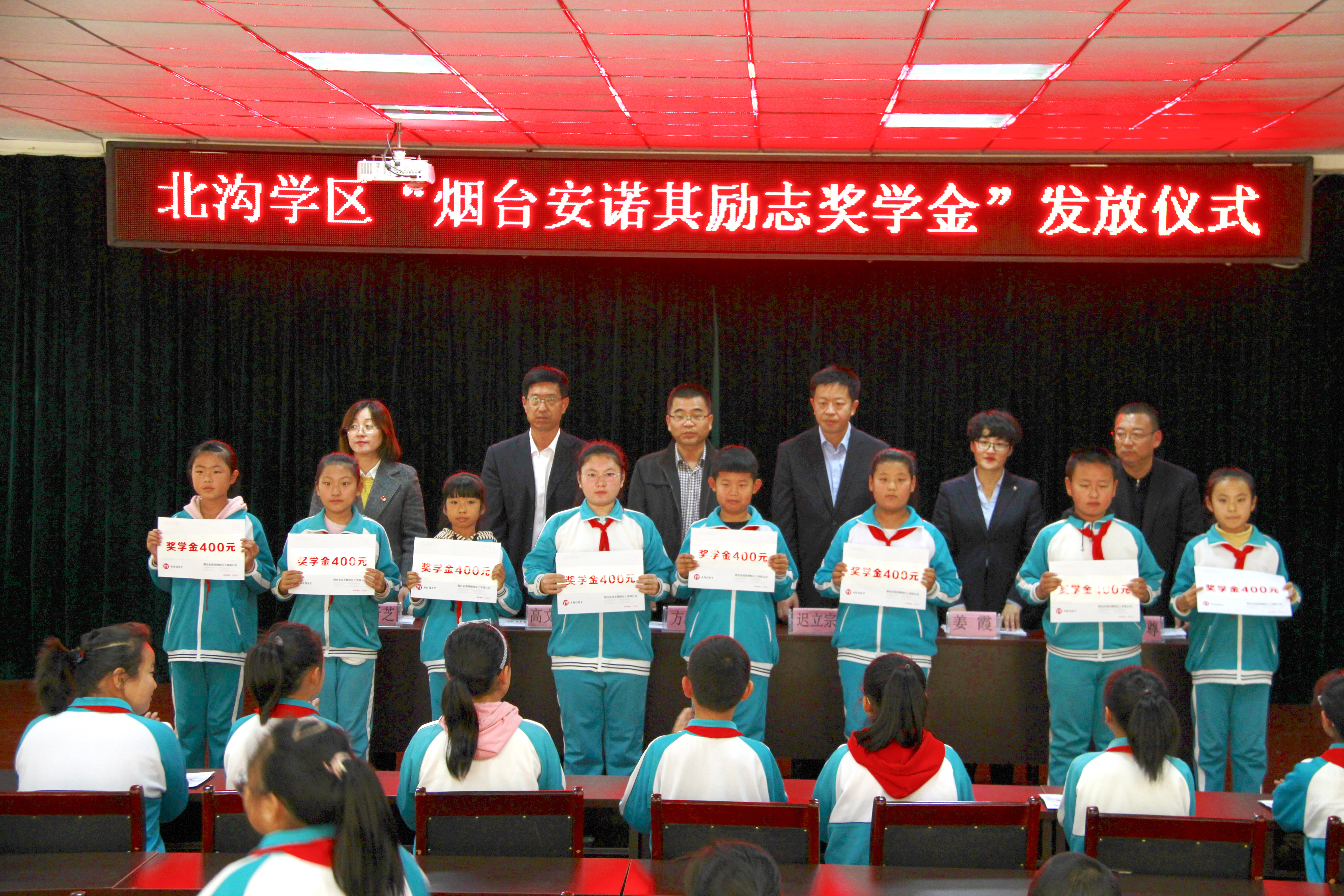 2019年10月,蓬萊北溝學區“煙臺安諾其勵志獎學金”發送