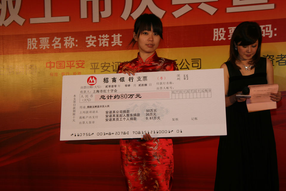 2009年4月 心系災區 安諾其為玉樹受災同胞捐款